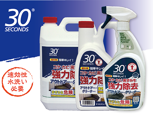 塩化ベンザルコニウムを主成分とした屋外専用に開発されたクリーナーです。塩素系の洗剤が使用できない場所や、水洗いがしにくい場所にも安心して使用できます。