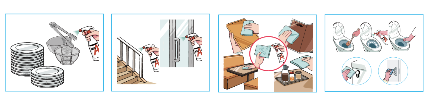 | 調理器具、調理機械、冷蔵庫、食器、ふきん、ショーケース、施設などのドアノブ、手すり、トイレの除菌・ウイルス対策に |