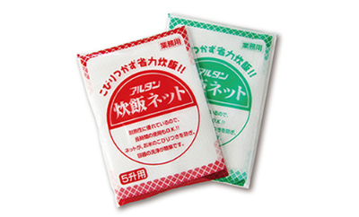 ②といだお米を入れて、包み込むようにネットをかぶせます。