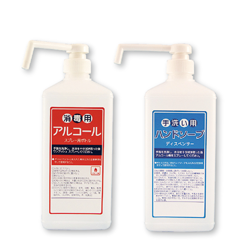 ③アルコール製剤の場合はアルコール用ノズル、ハンドソープの場合はハンドソープ用ノズルを専用ポンプに取付ます。