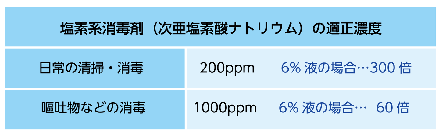 その都度新しく作る必要があります。また、濃度が高すぎると腐食、漂白作用による危険性が増すため、状況に応じて