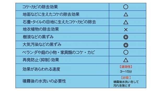 気になるカビ・コケ部分にかけた後、水洗いをして仕上げます。